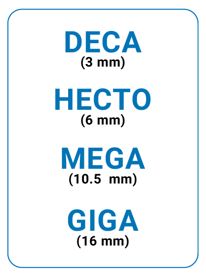| MEGA | 10.5 mm | 80 Bar / 1160 psi |
