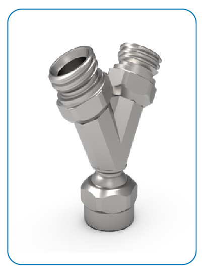 You can fit a straight spacer, a 45° outlet (curved banjo) or a 90° outlet (banjo) and then connect a quick coupling or attach the hose directly. If the thread of the distribution block does not match the thread of the range of spacers, banjo bolts, quick release couplings or hoses, you can use the necessary adapter. It must always include either on the connection side to the block or on the connection side to the tool at least one quick connection coupling.