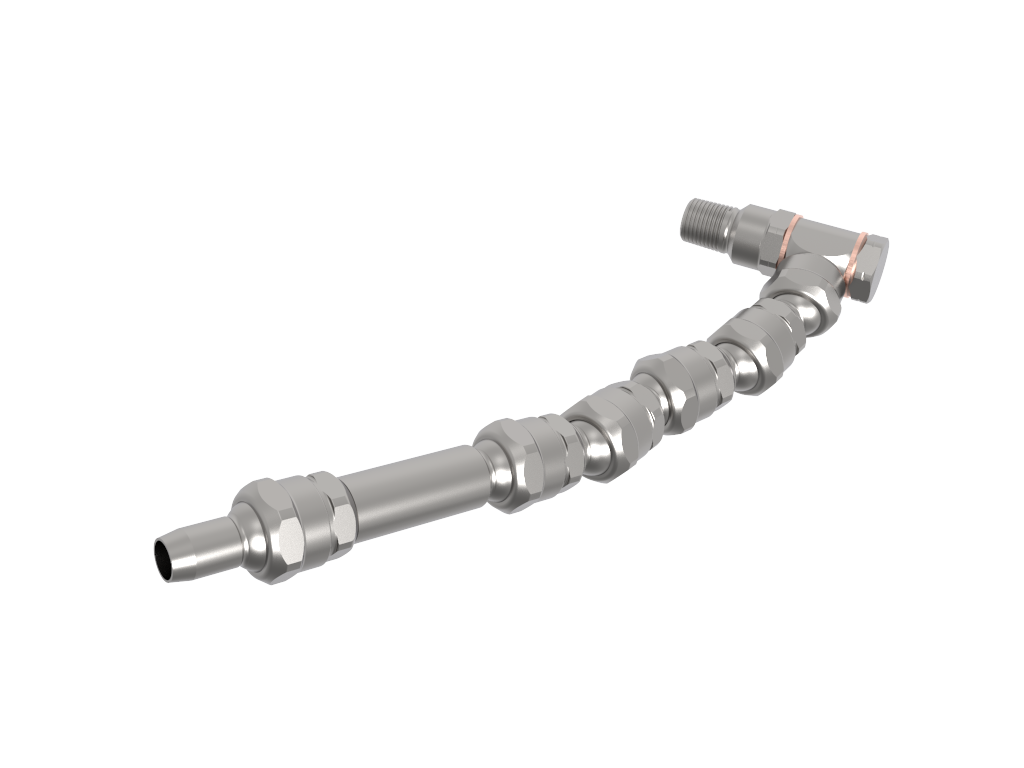 Whether it is a flexible or copper tube, identify the required length. In case of selecting a flexible tube, identify the necessary length to connect the coolant distribution block to the tool. Special lengths are available under request. In case of selecting a copper tube to duct coolant from the distribution block to the cutting edge of the tool, then no additional parts are required.